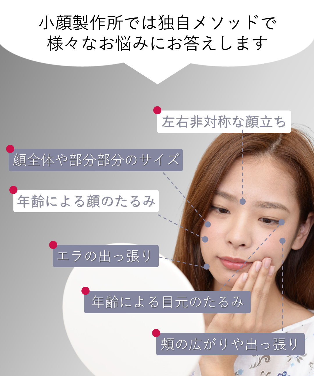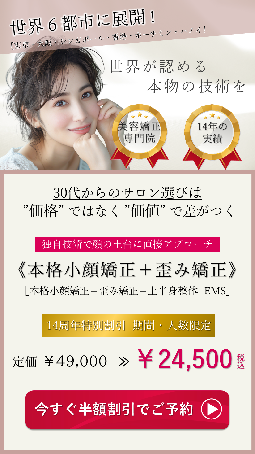 A.本格小顔矯正は基本的に小顔にするという目標では1回の施術で十分に実感いただいております。もちろん物理的に1回より2回以上の施術を行った方が良いですが、基本的に2回目以降のメンテナンスは主に歪みの施術をさせていただいております。